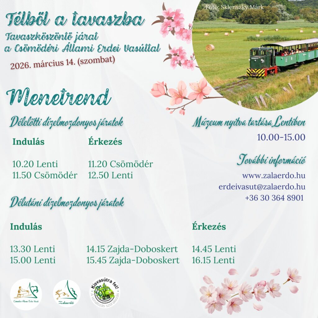 Hangulatos tavaszköszöntő vonatozásra vár a Zalaerdő Zrt. által üzemeltetett csömödéri erdei vasút, ahol garantált a friss levegő és a zalai táj szépségei. Ha szeretnél kiszakadni a hétköznapokból, és egy kellemes programmal indítani a legvirágosabb évszakot, akkor irány Lenti!